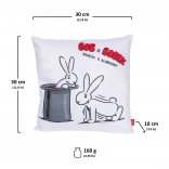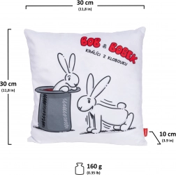 Detský vankúš BOB A BOBEK 30 × 30 cm poteší všetkých milovníkov legendárnych králikov z klobúka. Hebký mikrovelúr je jemný k detskej pokožke, kvalitná potlač s motívom „cvičí“ si dlho zachová farby a výplň z dutého vlákna je ľahká a dobre drží tvar.