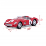 Objavte legendu motoršportu v precíznom prevedení. Tento licencovaný model FERRARI 250 TESTA ROSSA v mierke 1:43 prináša realistické detaily ako drôtené kolesá, bočné výfuky, priehľadné čelné sklo a pretekárske štartovné čísla. Perfektný do vitríny aj ako darček pre milovníkov klasických pretekárskych vozidiel.