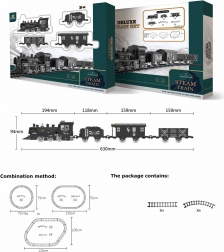Súprava obsahuje lokomotívu (20 cm), tri vozne (10–15 cm), rovné a zakrivené koľaje a nádobku na vodu na vytvorenie realistického dymového efektu. Napájanie zabezpečujú batérie 4× AA (nie sú súčasťou balenia). Prepínač ON/OFF je umiestnený na ľavom boku lokomotívy, nádržka na vodu sa nachádza pod strieborným komínom.