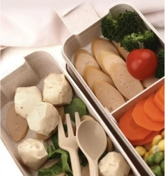 Súčasťou je sada ekologických príborov, ktorá obsahuje lyžičku a vidličku s vlnitým okrajom.