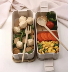 Súčasťou balenia je tiež sada príborov z pšeničnej slamy. Tieto praktické nástroje obsahujú lyžičku a vidličku, ktorá má vlnitý okraj pre použitie ako nôž. Príbory sa ľahko umiestňujú do lunchboxu, čo zaisťuje, že ich máte vždy po ruke.