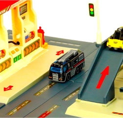 Prostredníctvom tejto jedinečnej hračky sa deti prenesú do sveta fantázie. Hračka obsahuje stanicu, policajné parkovisko a vozidlá, ktoré umožňujú vytvárať rozmanité herné scenáre. Každý prvok je navrhnutý tak, aby priblížil realitu malého mestečka.