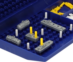 Plastové puzdro sa po otvorení premení na dvojitú hernú dosku s dvoma mriežkami na útok aj obranu. Každý hráč rozmiestni svoje lode a pomocou kolíkov označuje zásahy a minutia. Cieľom je odhaliť pozície súpera a potopiť všetky jeho lode. Kompaktné vyhotovenie s priehradkami na dieliky zaručuje poriadok a jednoduché prenášanie.