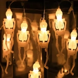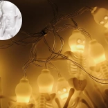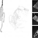 Štýlová svetelná dekorácia, ktorá v okamihu premení interiér aj chránený exteriér na tajomné halloweenske prostredie. Každý z 10 miniatúrnych kostlivcov má samostatnú LED diódu, vďaka čomu je svetlo rozprestreté rovnomerne po celej dĺžke reťaze. Teplá biela farba vytvára príjemnú, a predsa strašidelnú žiaru.