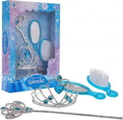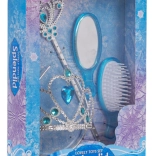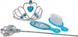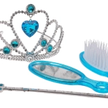 Očarujúca sada pre malé princezné od 3 rokov poteší každú milovníčku rozprávok. Súčasťou je tiara, čarovná palička, zrkadielko a kefu na vlasy s jemným modrým zdobením. Bezpečné prevedenie, kvalitné materiály a čarovné trblietavé detaily podnecujú fantáziu a hranie rolí.