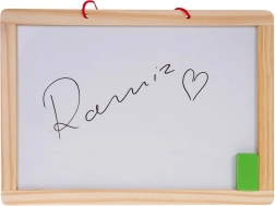 Drevená, obojstranná tabuľa pre deti od 3 rokov ponúka čiernu plochu na kriedu a bielu plochu na suché fixy. V balení nájdete aj kriedy, suchý fix, hubku a magnetky s písmenami, číslami a tvarmi. Skvelá na prvé písanie, počítanie aj kreatívne kreslenie. Obojstranná tabuľa, bohaté príslušenstvo, odolné drevené prevedenie a zábavná výučba v jednom.
