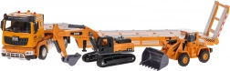 Sada stavebných vozidiel s odpojiteľným prívesom je ideálnou hračkou pre každého malého staviteľa. Realistické prevedenie a funkčnosť vozidiel prispievajú k rozvoju detskej fantázie a motoriky.