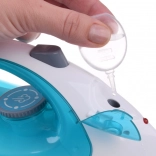 Táto deťmi obľúbená hračka je navrhnutá tak, aby podporovala detskú kreativitu a napodobňovala skutočné žehlenie. S bielou a tyrkysovou farebnou kombináciou a funkčnými prvkami ako je nastaviteľný gombík teploty, červené svetielko a uzatvárateľná nádržka na vodu, ponúka autentický zážitok.