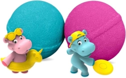 Bomba po rozpustení vytvorí nádhernú ružovú alebo modrú penu a odhalí jedného zo šiestich zberateľských hroších figúrok: