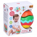 Zábavná a farebná navliekacia guľa od značky Playgo rozvíja jemnú motoriku a koordináciu očí a rúk už od 6 mesiacov. Sada obsahuje tyčku a päť dielov na navliekanie, ktoré sú ideálne na prvé objavovanie tvarov a farieb. Perfektná hračka na prvé učenie a rozvoj motoriky aj koordinácie formou hry.