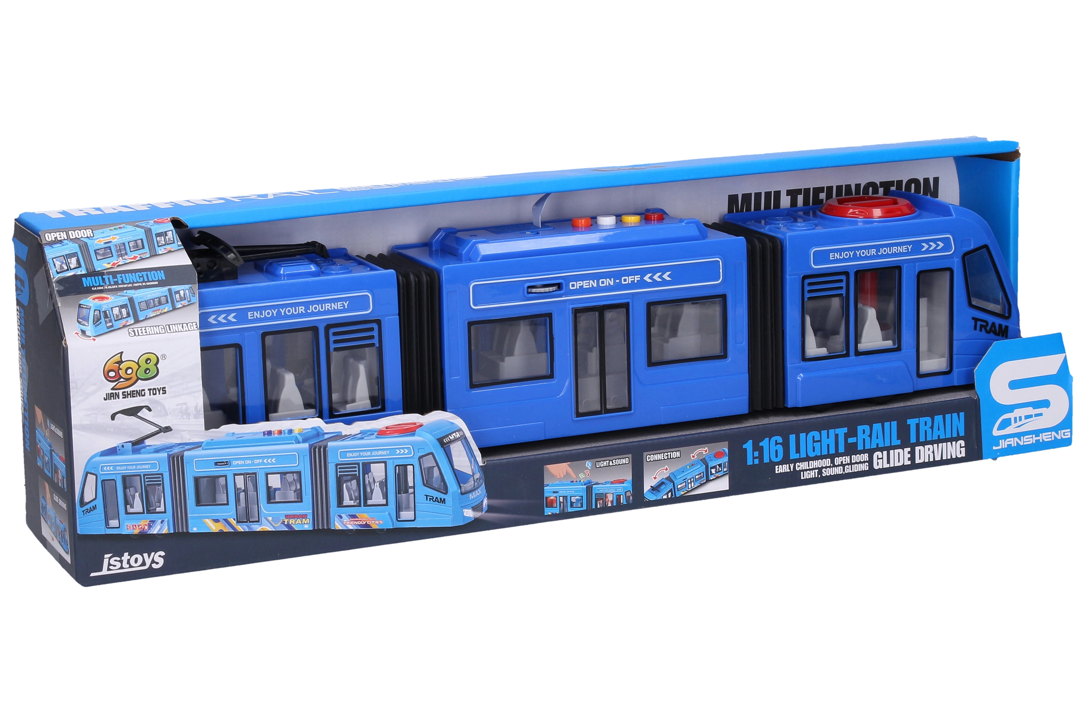Realistická električka pre malých aj veľkých fanúšikov mestskej dopravy. Ponúka svetelné a zvukové efekty, voľnobeh a jednoduché ovládanie pomocou tlačidiel na streche. Vďaka otváraniu stredných dverí a otáčaniu predných kolies je hra ešte zábavnejšia. Batérie 3× AG13 sú súčasťou balenia, takže môžete hneď vyraziť na trať.