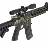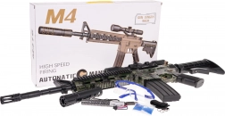 Veľká vojenská puška M4 na gélové guľôčky je určená pre deti od 14 rokov. Mala by sa používať so špeciálnymi hydrogélovými guľôčkami, ktoré pri zásahu cieľa efektne praskajú a sú pre deti bezpečné. Sada obsahuje sáčok s nepripravenými guľôčkami. Guľôčky sa pripravia tak, že sa zalejú vodou a nechajú zväčšiť objem približne 4–6 hodín. Potom stačí prebytočnú vodu vyliať a náboje sú pripravené. V tomto modeli by sa mali používať guľôčky s priemerom približne 7–8 mm. . Pušky sú vybavené manuálnym aj automatickým režimom streľby. Zameriavač je vybavený zväčšovacím sklom a vzdialenosť cieľa možno nastaviť pomocou kolieska. Súčasťou balenia je príslušenstvo ako hlaveň, tlmič, zásobník, ploskačka a ochranné okuliare. Hračka je napájaná 7,4 V batériou, ktorá je súčasťou sady. .. Špecifikácia: . - hračka puška M4 s príslušenstvom, .- možnosť zostaviť pohyblivé časti, ako je hlaveň, tlmič, zásobník, ploskačka, .- možnosť montáže zameriavača s lupou a nastavením priblíženia, .- manuálny alebo automatický režim streľby, .- dodáva sa so sáčkom hydrogélových guľôčok, .- hydrogélové guľôčky sa pri náraze rozbijú a ich použitie je bezpečné, .- verná reprodukcia skutočnej pušky, .- určené pre deti od 14 rokov, .- montážny návod je súčasťou balenia. . |