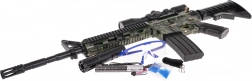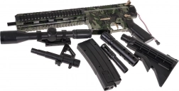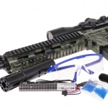 - puška, .- zásobník, .- hlaveň, .- tlmič, .- zameriavač s kolimátorom, .- ploskačka, .- USB kábel, .- 7,4 V batéria, .- sáčok s guľôčkami na prípravu, .- šnúrka na krk, .- ochranné okuliare, .- manuál v angličtine, .- farebné balenie. . |
