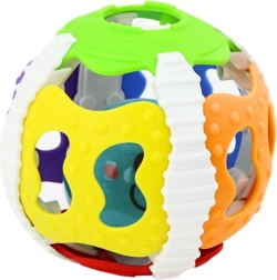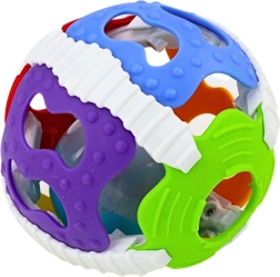 Hlavnou atrakciou loptičky je plastová guľôčka vnútri, ktorá reaguje na pohyb dieťaťa. Pri manipulácii s loptičkou vydáva zvuky a svieti, čo zaujme pozornosť dieťaťa a stimuluje jeho sluchové a zrakové zmysly. Tieto interaktívne efekty nielen zabávajú, ale tiež pomáhajú rozvíjať senzorickú percepciu a pohybovú koordináciu malých detí.
