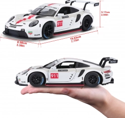 Model je opatrený realistickými potlačami a grafikou Porsche RSR, ktoré zdôrazňujú jeho závodný charakter. Gumené závodné pneumatiky a riaditeľné predné kolesá prispievajú k realistickému vzhľadu a funkčnosti modelu, čo z neho robí skvelý doplnok pre každého fanúšika automobilov.