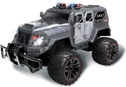 Vydaj sa na dobrodružnú misiu s RC autom S.W.A.T. Police Pioneer. Tento svižný model v mierke 1:12 ponúka zábavu na záhrade aj na chodníku a vďaka konštrukcii si poradí aj s vyššou trávou. Svietiace majáky a predné svetlá s nastaviteľnými režimami dodajú jazde atmosféru policajnej akcie.
