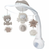 Univerzálny hudobný kolotoč 3v1 s projektorom od INFANTINO upokojuje bábätko pomocou jemného svetla, ukľudňujúcich melódií a plynulého pohybu hračiek. Možno ho používať ako kolotoč nad postieľku, nočnú lampičku na postieľku aj stolový projektor pre staršie deti. Ponúka denný a nočný režim, 6 melódií, 4 zvuky prírody a nastaviteľnú hlasitosť.