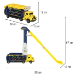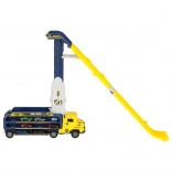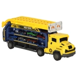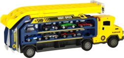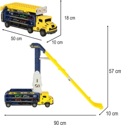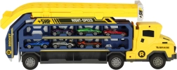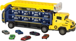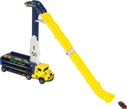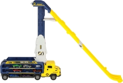 Tento multifunkčný prepravník áut sa behom chvíľky premení na impozantnú dvojkoľajovú pretekársku dráhu. Deti môžu prevážať až šesť malých autíčok a potom ich vypustiť po paralelných tratiach k napínavým pretekom. Atraktívne žlto–modré prevedenie láka k hre a podporuje jemnú motoriku aj koordináciu oko–ruka.