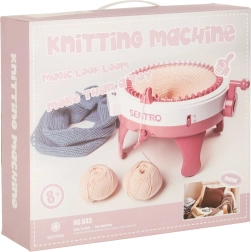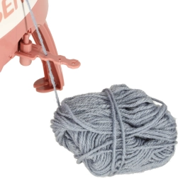 Súčasťou sady sú 4 farebné klbká priadze (tmavosivá, svetlosivá, ružová, béžová), ihly rôznych veľkostí a háčik na jednoduché dokončovanie a zošívanie. Stabilné nožičky a prísavky pomáhajú udržať stroj pevne na mieste počas práce.