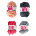 V balení nájdete 4 klbká priadze, sadu ihiel a háčik na jednoduché dokončovanie okrajov a zošívanie.