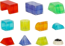 Priehľadné dieliky v mnohých tvaroch a farbách podporujú kreatívne stavanie od jednoduchých modelov po komplexné 3D konštrukcie.