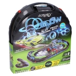 Táto rozkladacia svietiaca autodráha je ideálnou voľbou na domáce preteky. Vďaka rozmerom 69 × 49,5 × 10,5 cm ju ľahko umiestnite na stôl či podlahu a po hre ju rýchlo zložíte. Svetelné prvky dodajú akcii ten správny šmrnc a zaujmú deti všetkých vekových kategórií.