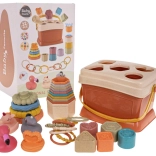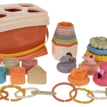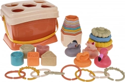 Súprava obsahuje tvary vhodné na stavanie a triedenie, čo pomáha rozvíjať jemnú motoriku. Deti si môžu vyskúšať skladanie vežičky alebo vytváranie rôznych konštrukcií. Všetky diely sa po hre jednoducho uložia do praktického boxu, čo deti učí udržiavať poriadok.