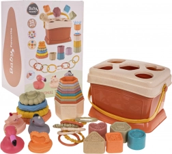 Detská súprava s tvarmi a sortérom je vynikajúca vzdelávacia súprava pre deti od 6 mesiacov. Rozvíja detskú fantáziu a učí ich spoznávať farby a tvary. Každý prvok tejto súpravy je navrhnutý tak, aby jasnými farbami a zaujímavými tvarmi pritiahol pozornosť detí a povzbudzoval ich k hre.
