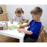 Sucho stierateľný fix umožňuje viacnásobné používanie kariet, čo podporuje zdieľanú hru so súrodencami a priateľmi. Zábavný dizajn s ilustráciami od Evy Brzozowskej očarí každé dieťa.