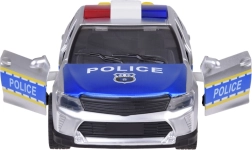 Realistické policajné auto pre malých strážcov zákona prináša svetelné a zvukové efekty, otváracie predné dvere a gumové protišmykové kolesá. Tri tlačidlá aktivujú sirény, klaksón aj zvuk štartu motora. Kompaktné rozmery 24 × 12 × 9 cm, napájanie 2× AAA (v balení).