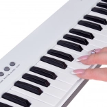 Na začiatok aj pravidelné cvičenie slúži bohatá výbava: 4 tóny, 4 rytmy a 10 demo skladieb. Praktické funkcie ako vibrato, regulácia hlasitosti a vypínač on/off zabezpečujú pohodlné hranie bez zbytočných komplikácií. Vďaka USB nabíjaniu so vstavaným 3,7 V akumulátorom odpadá starosť o batérie.