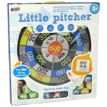 Terč vyzerá veľmi podobne ako ten pre dospelých, je však vyrobený z materiálu príjemného na dotyk, na ktorý sa ľahko prichytí suchý zips. Dvanásť guľatých loptičiek rozdelených do štyroch farieb umožní súťaženie. Zvolajte rodinu a začnite sa zabávať.