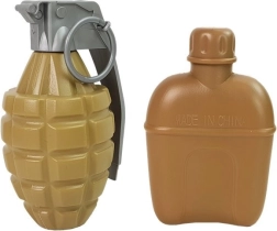Veľká vojenská sada pre malých dobrodruhov ponúkne hodiny kreatívnej zábavy. Obsahuje prilbu, masku, dve pištole so svetelnými efektmi a zvukom streľby, granát, ďalekohľad, kompas, nôž a ďalšie doplnky. Všetko je vyrobené z odolného plastu a v jednotnej vojenskej farbe. Ideálne na prezliekanie, spoločnú hru aj ako darček – balené v darčekovej krabici. Napájanie pištolí: 3× AG13 (súčasťou). Vhodné od 3 rokov, CE, EN 71.