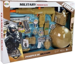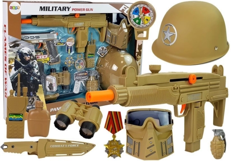 Tento bohatý vojenský set je perfektný pre všetky deti, ktoré milujú akčné hry a kostýmy. Dve rôzne pištole sa po stlačení spúšte ozvú realistickým zvukom streľby a doprevádzajú ich svetelné efekty. Vďaka množstvu doplnkov si deti ľahko rozdelia úlohy a vymyslia nekonečné scenáre – od prieskumu až po tajné misie.