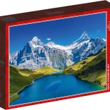 Užite si relax pri skladaní krásneho motívu Jazero Bachalpsee, Alpy. Puzzle s 1000 dielikmi a rozmerom po zložení 69 × 47,8 cm ponúka príjemnú výzvu, kvalitnú tlač a presné výseky pre hladké skladanie.