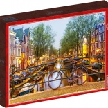 Toto krásne puzzle s motívom rozžiareného Amsterdamu poteší začiatočníkov aj skúsených skladačov. Vďaka kvalitnému spracovaniu a presným výrezom do seba dieliky skvele zapadajú a výsledný obraz s rozmermi 69 × 47,8 cm vynikne doma aj v kancelárii.