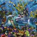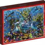 Puzzle ALIPSON s motívom podmorského sveta poteší každého milovníka skladačiek. Užite si 1000 dielikov s nádhernými delfínmi a loďou pokladov, rozmer po zložení 69 × 47,8 cm, presné výrezy a kvalitná tlač pre hladké skladanie a krásny výsledok.