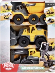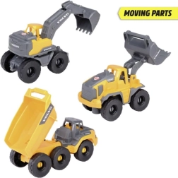 Stavebná sada VOLVO s tromi detailnými stavebnými strojmi poteší malých staviteľov od 3 rokov. Kolesový nakladač, bager a kĺbový sklápač v mierke 1:36 majú pohyblivé časti a pohon na voľnobeh. Každé auto meria 16 cm a v ikonických farbách žltá/sivá ponúka realistickú hru doma aj na cestách.