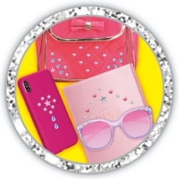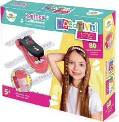 Premeňte bežné predmety na originálne kúsky! Sada s aplikátorom a 80 trblietavými kamienkami umožní deťom jednoducho a bezpečne lepiť ozdoby do vlasov aj na rôzne hladké povrchy. Vďaka samolepiacej vrstve je aplikácia rýchla a bez neporiadku.
