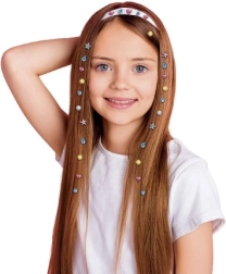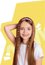 Obsah balenia: aplikátor, 80 ks trblietavých kamienkov, doplnky. Odporúčané pre deti od 5 rokov pod dohľadom dospelej osoby pri používaní vo vlasoch.