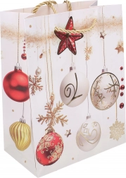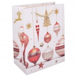 Štýlová vianočná darčeková taška vo veľkosti M poteší praktickým formátom 26 × 32 × 10 cm a modernými sviatočnými motívmi. Ideálna na rýchle a elegantné balenie darčekov. K dispozícii sú 4 varianty dizajnu na dokonalé zladenie s obsahom. Pevný materiál a praktické ucho zaistia jednoduché a bezpečné prenášanie.