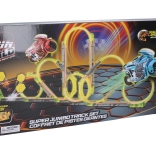 Zažite nezabudnuteľné dobrodružstvá s touto super dráhou, ktorá prichádza s dvoma motorkami vybavenými gyroskopom pre stabilnú jazdu. Vystreľovacie zariadenie zabezpečí rýchly štart a motorky s dojazdom až 50 metrov otestujú vaše zručnosti pri ovládaní na diaľku. Každá motorka má kompaktnú veľkosť 4,5 cm, čo je ideálne pre rýchle a obratné jazdy. Ak chcete rozšíriť svoju zbierku, ďalšie motorky sú k dispozícii na samostatný nákup.