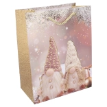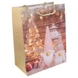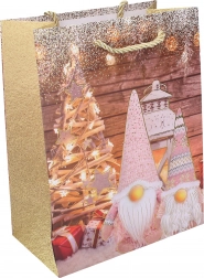 Štýlová vianočná darčeková taška vo veľkosti M poteší svojím pevným spracovaním a univerzálnym použitím. Ideálna na rýchle a elegantné balenie darčekov. Dostupná v 4 variantoch motívov. Odolný papier, praktické rozmery a sviatočný dizajn pre bezstarostné balenie.