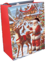 Uľahčite si balenie vianočných darčekov s elegantnou darčekovou taškou vo veľkosti L. Vďaka pevnému materiálu a praktickým uškám zvládne bezpečne preniesť aj väčšie a ťažšie balíčky. Štýlové vianočné motívy dodajú každému darčeku slávnostný vzhľad.