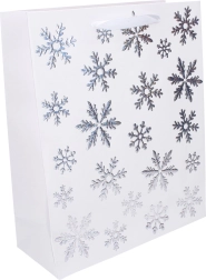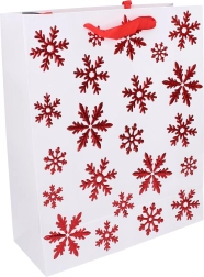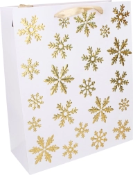 Štýlová vianočná darčeková taška vo veľkosti L s rozmermi 31 × 42 × 12 cm. Ideálna na balenie väčších darčekov, s pevnými ušami a kvalitným papierom pre jednoduché a elegantné odovzdanie. K dispozícii 4 varianty vianočných motívov.