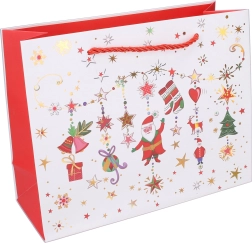 Dodajte darčekom elegantný sviatočný vzhľad vďaka vianočnej darčekovej taške v praktickej veľkosti XS. Taška je vhodná na menšie predmety, kozmetiku, sladkosti či drobné dekorácie a poteší pevným spracovaním a atraktívnou grafikou.