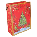 Štýlová vianočná darčeková taška vo veľkosti L s rozmermi 42 × 31 × 12 cm je ideálna na zabalenie väčších darčekov. Ponúka 4 sviatočné dizajny, pevné prevedenie a pohodlné ucho na jednoduché prenášanie.