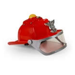 Prilba je navrhnutá tak, aby vyzerala ako skutočná hasičská prilba, vrátane dekoratívneho odznaku a jasne červenej farby.