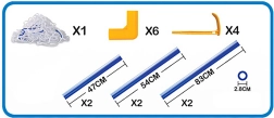 Súprava obsahuje pevné plastové rúrky a príslušenstvo, čo zaisťuje stabilitu bránky počas hry.