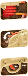 • Jednoduché ovládanie – natiahnutie kohútika posúva zásobník, stlačenie spúšte ihneď vystrelí